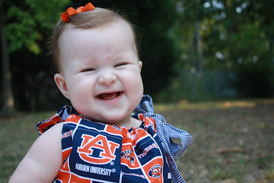 Up until last week Emmy was still taking three naps a day. The day she turned seven months she decided she was done with her evening nap. I have been ready for her to give it up just because it makes it difficult to go out in the evening. But I put her in her bed just like always and she just didn't fall asleep. I decided to try again the next day just to be sure and again she didn't go to sleep. So she now officially takes two naps. Her morning nap is usually 1.5-2 hours and her afternoon nap is usually 1-1.5 hours. She goes to bed at 6:30 now that she dropped her evening nap and still sleeps until 7 and sometimes a little later. I'm hoping her afternoon nap will start stretching out a little longer and then her bedtime can move back to 7. Either way I'm not complaining because she is such a good sleeper.